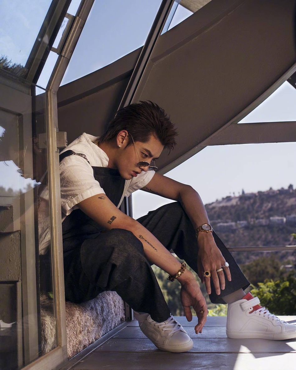 吴亦凡封面大片眼神犀利轮廓分明 戴金项链嘻哈范十足