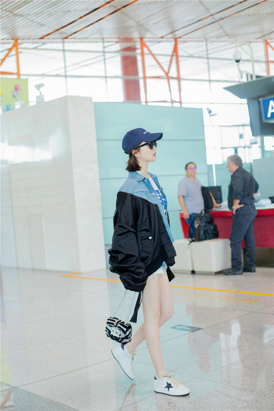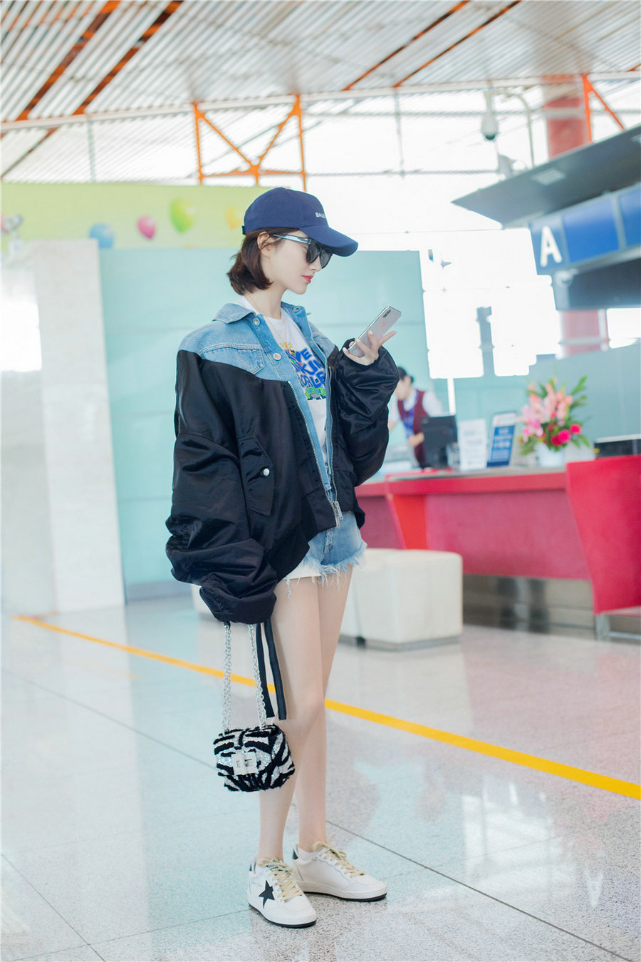 9月3日,景甜现身北京机场,受品牌邀约启程前往纽约2019春夏大秀。当日,景甜以一身拼接外套搭配牛仔短裤现身,简约又不失层次,迷你斑马纹单肩包的巧妙点缀为整体造型增添了一抹时尚感......