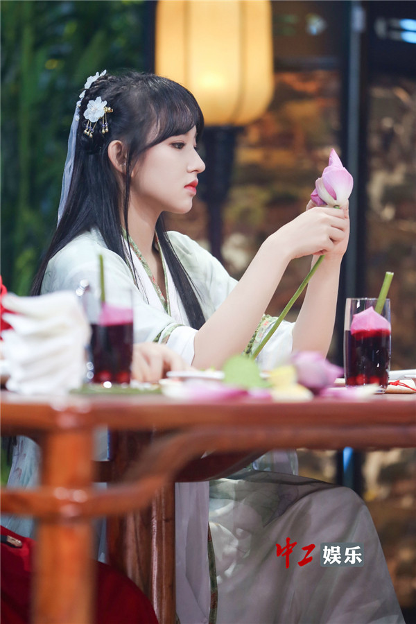 中秋佳节的美好寓意一直是“但愿人长久,千里共婵娟”,程潇也表示中秋代表能和家人团聚的日子,因此节目现场特地摆上“中秋赏月宴”共度佳节,除了品尝中式传统美食,更有中国古代装束复原团队的汉服秀惊艳全场。程潇一袭古色古韵的淡绿汉服素雅端庄,半梳起的发髻仙气十足,乌黑长发灵动秀丽令人移不开眼。