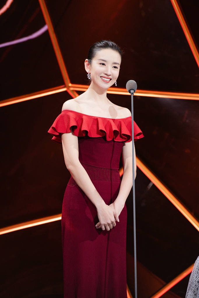 董洁红裙亮相优雅知性 以戏为本见证金鹰荣光