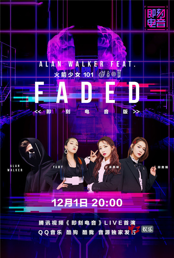 开场大秀是由特邀主理人Alan Walker与火箭少女101带来的燃炸表演,全新演绎“即刻电音”版《Faded》。Alan Walker熟悉的卫衣口罩遮面装扮和朗朗上口的旋律一出现便令全场欢呼不已,不约而同跟随节奏一起嗨,网友们直言“简直是神仙现场”。