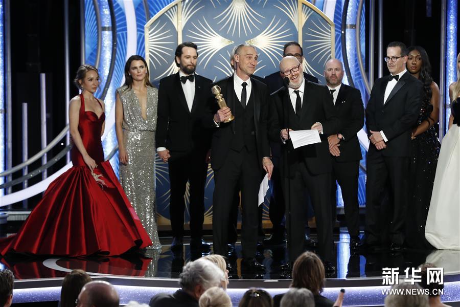 1月6日,在美国洛杉矶贝弗利山,获得剧情类最佳剧集奖的《美国谍梦》主创人员接受颁奖。新华社/路透