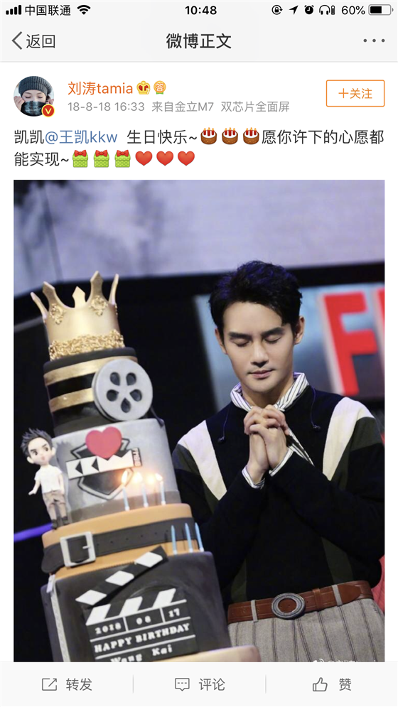 王凯生日,刘涛就曾经亲手送上蛋糕为弟弟庆生,而刘涛生日,王凯也是准时送上祝福。