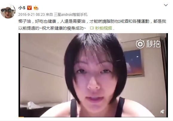 小S曾发微博说:椰子油,好吃也健康,人还是需要油,才能燃烧脂肪!