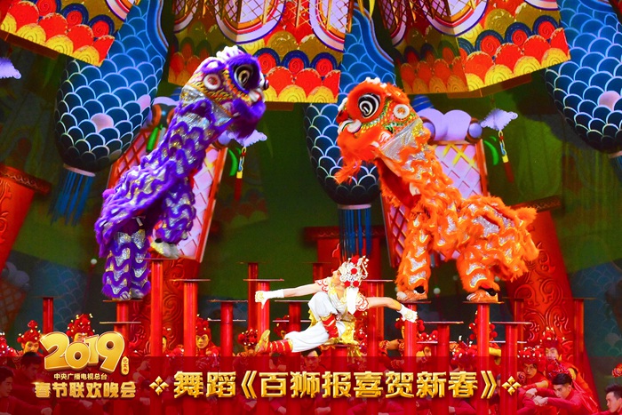 除了戏曲艺术焕发新活力,敦煌文化也在《敦煌飞天》的舞蹈中再现光彩。松石绿和珊瑚红的高级配色,芭蕾与古典的有机结合,让舞者们完成了一场历史与现代的跨时空对话,使这支舞蹈成为观众的“心头好”。观众留言称:“舞蹈太美了,服装配色大胆庄严,宛如从画中走来的仙女!”“从舞蹈到音乐、造型、配色,无一不美!”除此之外,由广东佛山南海比麟堂龙狮团领衔,将舞狮文化融入喜庆热闹的舞蹈《百狮报喜贺新春》,以及各个分会场颇具民族特色的精湛表演,均通过现代美学角度与新技术,充分展现出中国传统文化的恒久魅力。