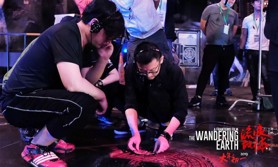 做剧本之前,郭帆先花了8个月时间搭建了一百年的世界变化史,包括社会、政治、经济、文化,以及自然中的地貌、洋流等方方面面。紧接着郭帆带领着一开始仅有一两个人的团队从写大纲到建立世界观,从几千张概念设计图到八千张分镜,全片视效镜头2000多个,占总镜头量超90%,团队从屈指可数的几个人到最后滚屏字幕上7000个名字。“难度核心不是创作,而是管理。”郭帆在三声访问中表示,由于科幻电影涉及大量的后期制作和其他配合工作,拍摄现场的临时调整将会造成所有环节的多米诺效应。