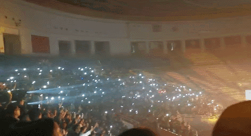 体育馆里,刚刚还在随着朋克音乐蹦跳的观众突然安静了一下,过了一会儿,开始自发地亮起手机闪光灯左右晃动,有女生小声啜泣起来。