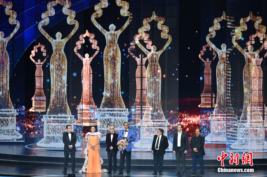 主竞赛单元评委会主席,美国导演罗伯·明可夫则携智利导演西尔维奥·盖约齐,中国导演曹保平,俄罗斯导演谢尔盖·德瓦茨沃伊,伊朗导演马基德·马基迪,英国导演西蒙·韦斯特及中国香港演员刘嘉玲集体亮相。 中新网记者 李骏 摄