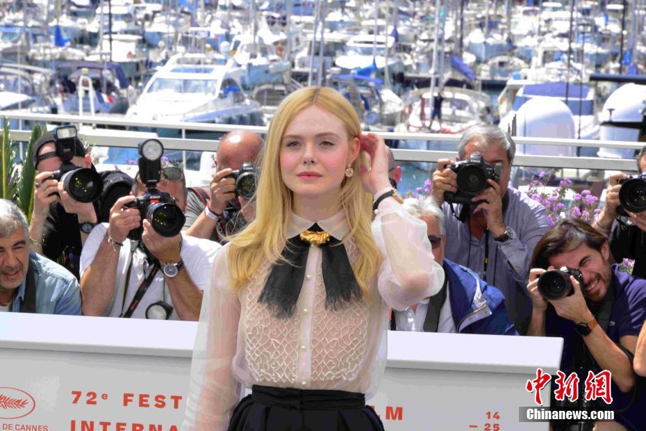 当地时间5月14日,第72届戛纳电影节主竞赛单元评委亮相,图为美国演员埃勒·范宁,她是戛纳电影节史上年龄最小的主竞赛单元评委。她曾于2006年出演戛纳电影节主竞赛单元影片《通天塔》,2010年主演的影片《在某处》获得威尼斯电影节最佳影片金狮奖。中新社记者 李洋 摄