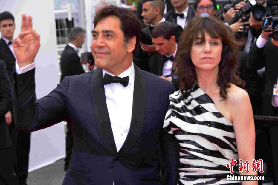 当地时间5月14日晚,西班牙影星哈维尔·巴登与英国影星夏洛特·甘斯布亮相第72届戛纳电影节开幕式红毯。本届戛纳国际电影节于5月14日至25日在法国戛纳举行,14日晚举行开幕式。中新社记者 李洋 摄