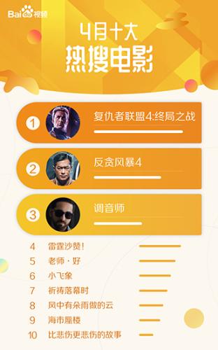 中新网5月16日电4月,以《复联4》为代表的超级英雄片以及多部悬疑片异常火爆。电视剧相对冷清,多部翻拍剧亮相后,总体热度口碑都表现平平。老牌综艺节目依然坐拥大量粉丝,《创造营2019》、《我是唱作人》等新晋网综也有亮眼表现。动漫、动画片总体表现平稳,经典作品经久不衰。