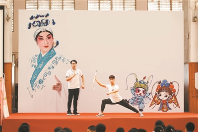 前天下午,由广东省艺术研究所主办的“名家大讲堂·粤剧新传承”活动邀请国家一级演员、粤剧当红文武生文汝清来到广州大学附属中学黄华路校区,跟初一师生分享粤剧艺术。