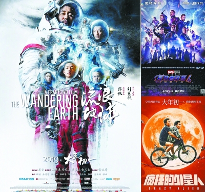 到目前为止,2019年内地电影票房前三的影片为《流浪地球》《复联4》《疯狂的外星人》。