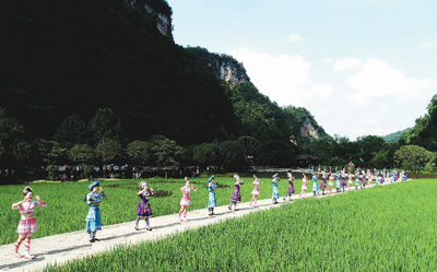 7月22日,一批音乐爱好者在湖南省张家界武陵源天子山、黄龙洞、金鞭溪等景点奏响《我爱你中国》、《我的祖国》,在峰林田园间以“致敬祖国”音乐快闪的形式拉开了2019黄龙音乐季的序幕。
