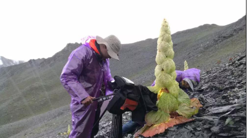 摄制组在高原拍摄成熟塔黄(图片提供:纪录中国)