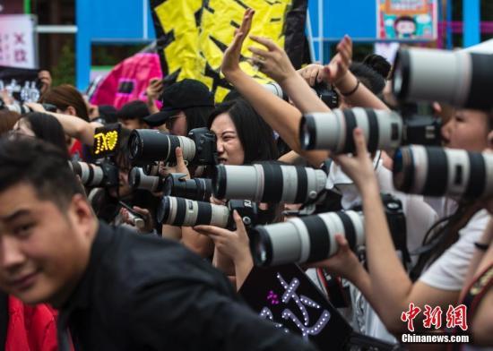 资料图:粉丝们在北京的一个粉丝嘉年华上架起长枪短炮拍摄偶像。中新社记者 刘关关 摄