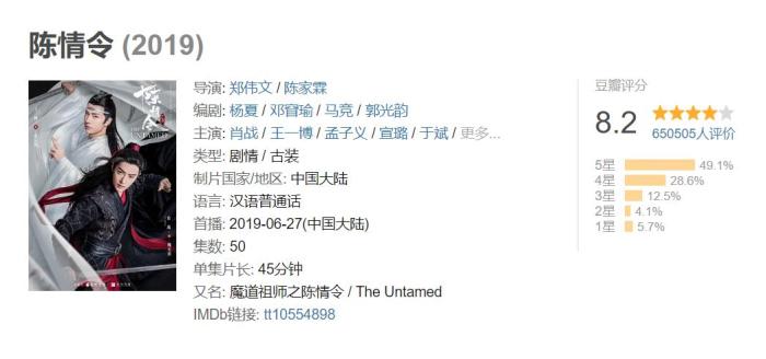 《陈情令》豆瓣评分页面。