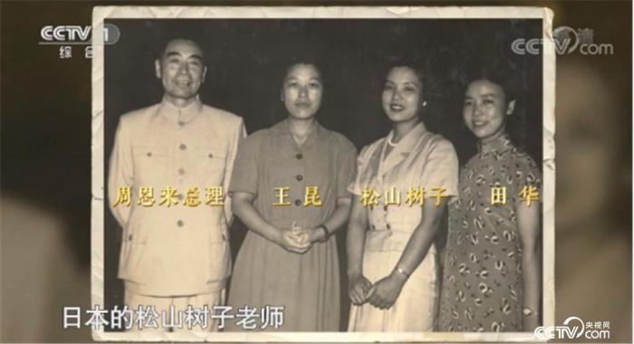 图:1955年 周恩来总理与王昆、松山树子、田华合影