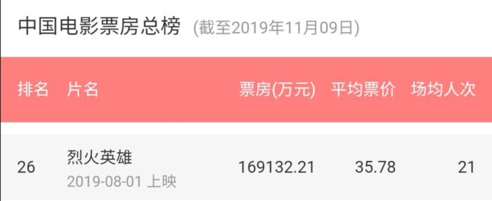 上映后,票房成绩不俗。据中国电影票房总榜数据,截至11月9日,电影《烈火英雄》票房已超过16亿元。
