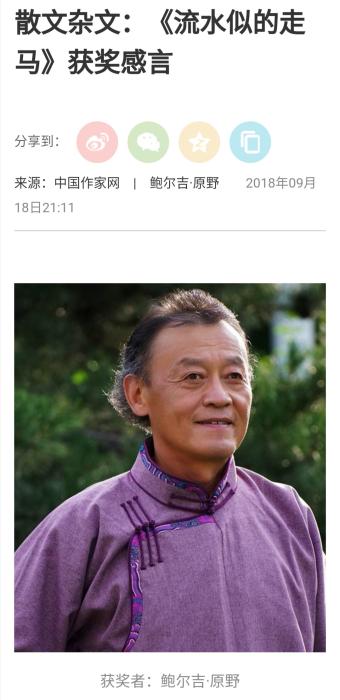 该作品在2013年已出版。辽宁省作协主办的辽宁作家网刊发的《辽宁省作家协会第十届主席团成员名单》显示,鲍尔吉·原野为该省作协副主席,其散文集《流水似的走马》获第七届鲁迅文学奖。