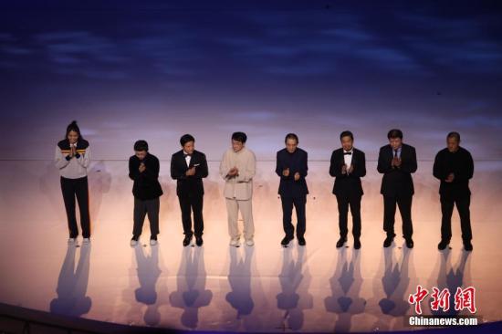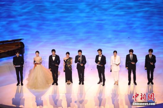 11月19日晚,第28届金鸡百花电影节在福建厦门开幕。众明星在开幕式上演唱歌曲《星辰大海》。中新社记者 李思源 摄
