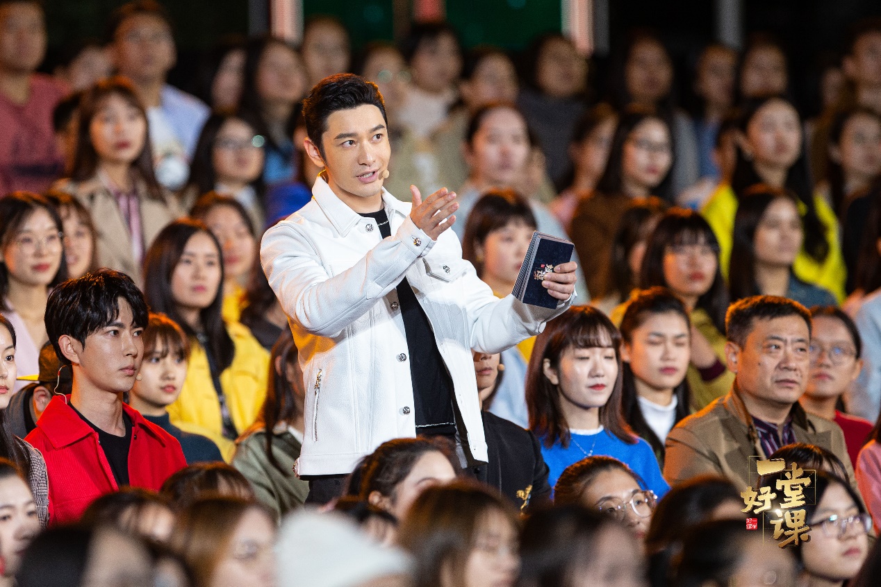《一堂好课》展示了一张在美国阿肯色州小石城的克林顿博物馆里陈列的图片,那是1997年6月30号晚上到7月1号凌晨北京高校的学生在天安门广场庆祝香港回归祖国的瞬间记忆,当时还是大一学生的黄晓明,被定格在了图片的中央。某种程度上,他的形象就成了文物的一部分。