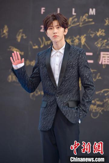 蔡徐坤亮相闭幕式红毯。 骆云飞 摄
