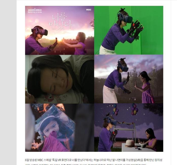 韩国MBC电视台节目组《见到你》利用VR技术帮助一名母亲与病逝女儿“重逢”。来源:韩国MBC网站报道截图
