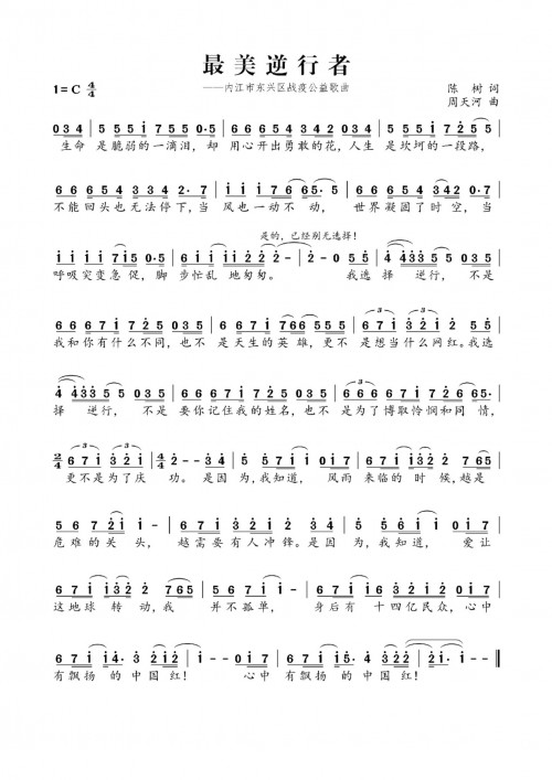 面对突如其来的疫情,在内江市东兴区宣传部和文旅局领导的感召下,他开始提笔创作。看到电视和互联网上“逆行者”们在危难时刻挺身而出的一幕幕感人场景,音乐家的心情澎湃起伏难以平静。