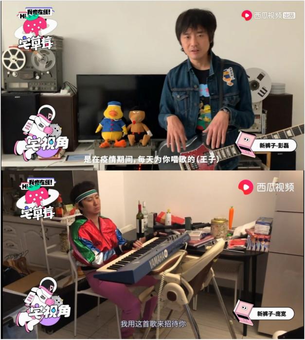 没有演出和舞台,音乐人们开始在卧室创作,新裤子乐队彭磊在微博上更新了一个月的“网络歌手”居家弹唱,紧随其后的庞宽也推出了颇有创意的音乐视频。在云上课、云办公成为常态的情况下,为了满足“宅家一族”对娱乐的需求,云音乐节、云蹦迪逐渐兴起。
