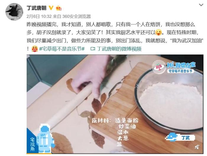 唐朝乐队主唱丁武在视频中烙葱油饼。