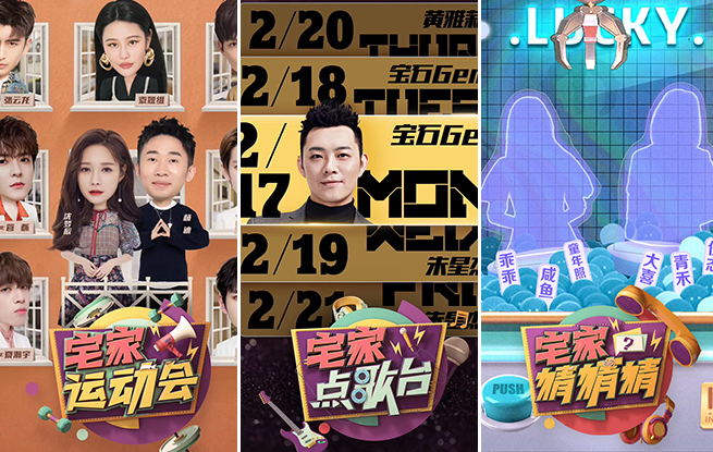 非常时期,由于节目无法正常录制,各大卫视和视频网站也另辟蹊径,争相探索“云综艺”、“云录制”等新模式。湖南卫视的《嗨!你在干嘛呢》《还能这样吃》《我们宅一起》等节目利用vlog的拍摄方式进行内容记录;爱奇艺推出的“宅家云综”系列,覆盖了音乐、游戏、体育等多方面题材,为用户提供更多居家娱乐内容。