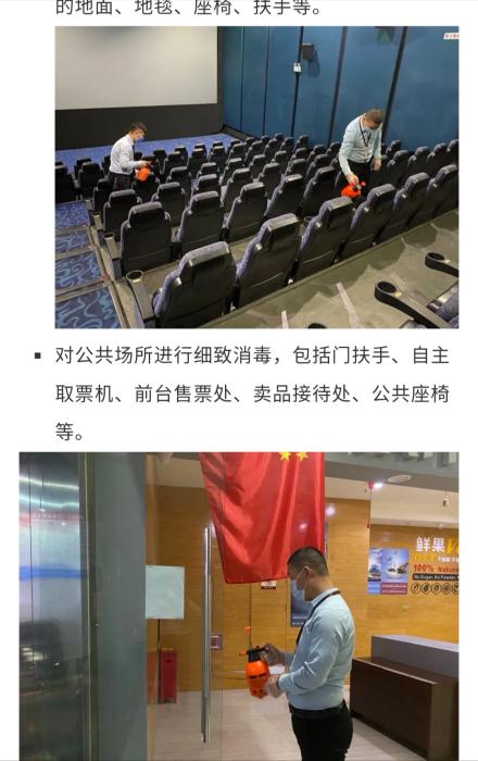 董经理说,根据防疫要求,目前影院封掉了部分座位,实行隔排隔座售票措施。此外,各项消毒准备工作必不可少,影院的工作流程也发生变化,比如顾客进入影院要填写入场基础信息、测量温度;前台工作人员需戴一次性手套,并避免与顾客接触;顾客在公共区域等候需间隔一人落座等。