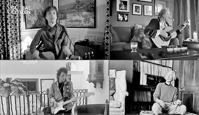 滚石乐队成员们各自在家完成了这次隔空相聚,献唱了他们1969年的经典作品《You Can’t Always Get What You Want》。