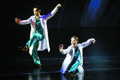 原创武术舞台剧《止戈战疫》,舞蹈艺术家黄豆豆大呼“耳目一新”,传统武术和抗击疫情、红色教育有机融合,既展现武术运动精髓,又凸显最美逆行者的抗疫精神,表现形式非常新颖。