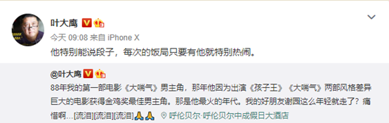 导演陈凯歌、叶大鹰、陈国星,演员冯远征、左小青、邢佳栋、陈法蓉、关凌等也纷纷在社交平台发文悼念。