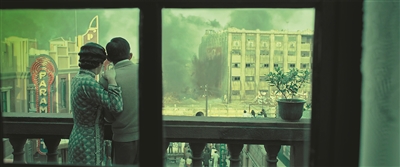 因四行仓库与未被战火侵袭的租界仅有一条苏州河之隔,战士们在仓库中奋力抵抗四天四夜的场面,全部被对岸的民众看在眼里。北岸的四行仓库炮火四起,笼罩在硝烟之中,偷袭的敌军和飞旋的敌机令人感受到战况的紧迫。而南岸的租界商户林立华灯璀璨,人们穿梭其中一派热闹的光景。虽仅有一河之隔,两岸却仿佛身处不同的世界。无论是色调上的灰暗与明亮,还是氛围上的紧张与祥和,都令人感受到强烈的视觉冲击和这场战役的奇观性。