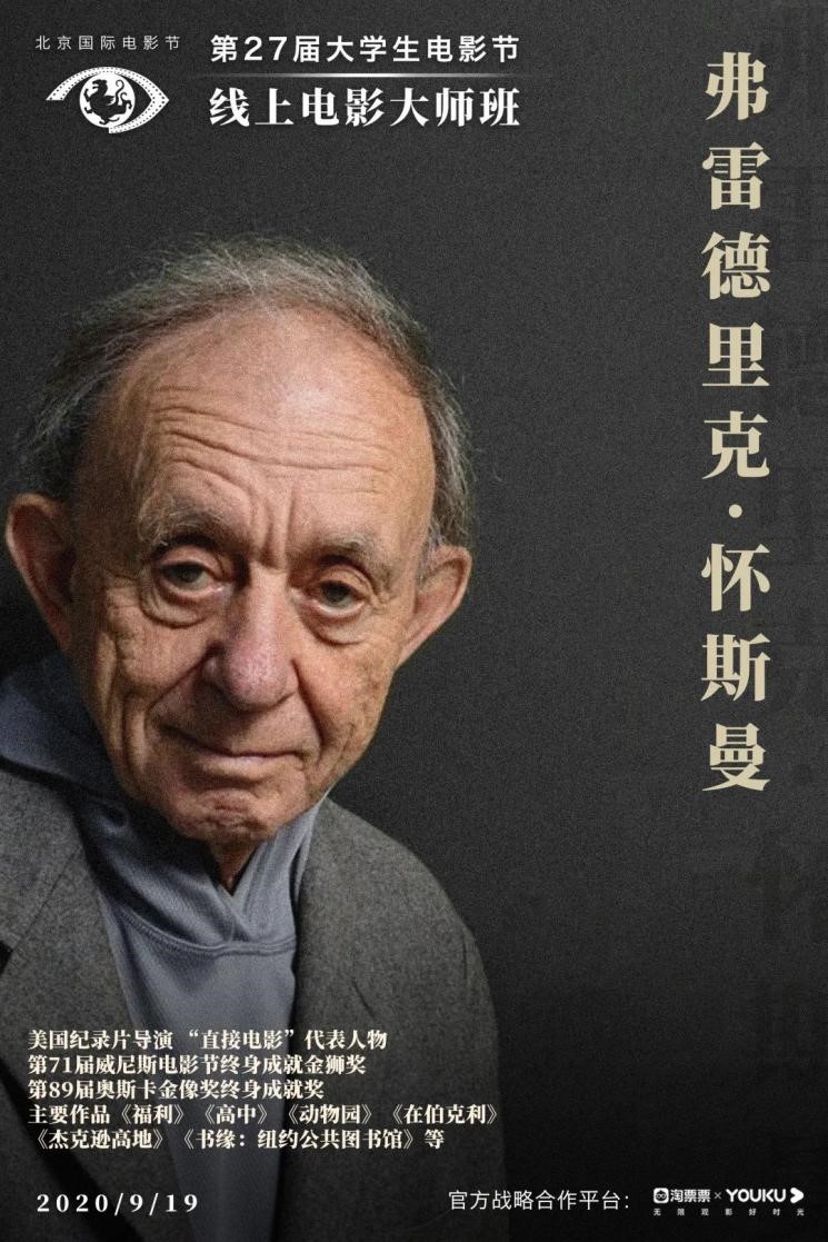 9月5日至9月19日,北京国际电影节·第27届大学生电影节将推出线上电影大师班,弗雷德里克·怀斯曼、谢飞、是枝裕和、马基德·马基迪、克莱尔·丹尼斯、万玛才旦等国内外知名电影导演倾情加盟,与大影节一同为广大青年打造线上电影专业艺术的课堂。
