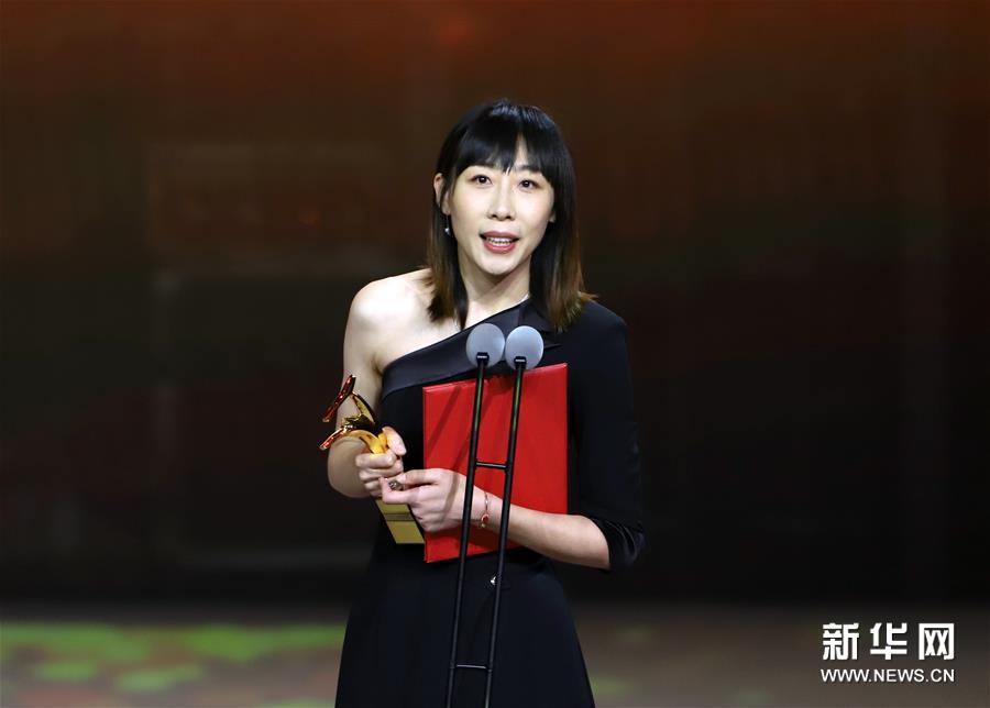 9月10日,凭借《半个喜剧》获得最佳女演员奖的任素汐在颁奖典礼上发表获奖感言。 当日,第十五届中国长春电影节颁奖典礼在吉林长春举行。电影《春潮》获得金鹿奖评委会大奖,电影《春潮》导演杨荔钠获得金鹿奖最佳导演奖,电影《我和我的祖国》获得金鹿奖最佳影片奖,电影《远去的牧歌》男主角海拉提·哈木和电影《半个喜剧》女主角任素汐分获金鹿奖最佳男演员奖和最佳女演员奖。 新华社记者 雒圆 摄