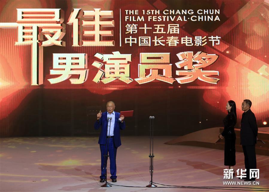 9月10日,凭借《远去的牧歌》获得最佳男演员奖的海拉提·哈木(左)出席颁奖典礼。 当日,第十五届中国长春电影节颁奖典礼在吉林长春举行。电影《春潮》获得金鹿奖评委会大奖,电影《春潮》导演杨荔钠获得金鹿奖最佳导演奖,电影《我和我的祖国》获得金鹿奖最佳影片奖,电影《远去的牧歌》男主角海拉提·哈木和电影《半个喜剧》女主角任素汐分获金鹿奖最佳男演员奖和最佳女演员奖。 新华社记者 雒圆 摄