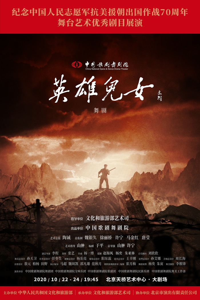 为纪念中国人民志愿军抗美援朝出国作战七十周年,在文化和旅游部艺术司的指导下,中国歌剧舞剧院出品的舞剧《英雄儿女》交响合唱版,将于10月22日至24日在北京天桥艺术中心大剧场上演。