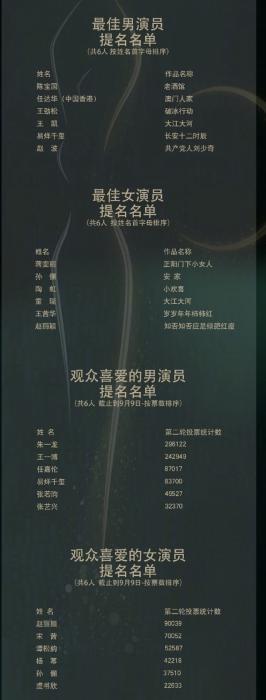 不过,今年金鹰奖将专业奖项和人气奖项分开,从提名名单中看到,金鹰奖设立了最佳男女演员奖,陈宝国、任达华、蒋雯丽、孙俪等入选。最具人气男女演员奖取消,保留观众喜欢的男女演员奖,入围的有赵丽颖、宋茜、谭松韵、朱一龙、王一博等人气演员。