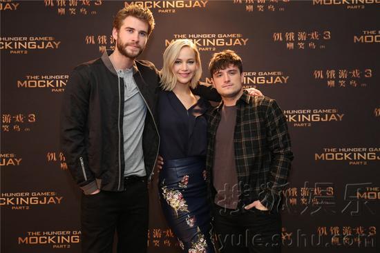 《饥饿游戏》系列电影的最终篇“《饥饿游戏3:嘲笑鸟(下)》11月20日在中国上映了,“大表姐”詹妮弗-劳伦斯与两名男主角乔什-哈切特、“锤弟”利亚姆-海姆斯沃斯一起来到中国参加首映式,三个人都激动坏了……