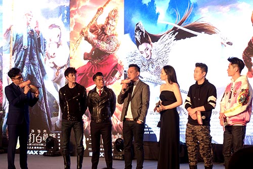 搜狐娱乐讯 即将于2016年2月8日猴年初一上映的3D奇幻喜剧《西游记之孙悟空三打白骨精》,在广州举办“猴年看西游”华南首映发布会。由导演郑保瑞领衔,郭富城、巩俐、冯绍峰、小沈阳、罗仲谦、费翔、陈慧琳、程东、彭宇9位《三打》核心演员以“人神魔”三界巅峰汇聚。