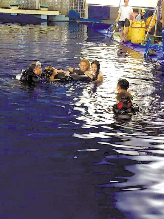 周星驰的电影一向喜欢用新人,不光是主角,还包括配角和群演。影片中林允扮演的美人鱼和罗志祥扮演的八爪鱼带领水族复仇求生,其中一幕人鱼族在水下遭遇反派射杀的场面尤其悲壮,也因此点题了《美人鱼》的环保主题。这些水下戏究竟是如何拍的?羊城晚报记者独家采访了一名来自广州的“美人鱼”——曾经的专业花样游泳队员黄煜。这位21岁的小姑娘在《美人鱼》剧组呆了她人生中难忘的三天,因此逗趣地把自己叫做“路人鱼”。