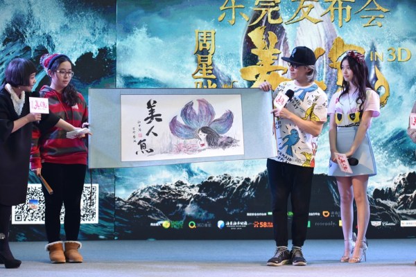发布会当天,为庆祝《美人鱼》的喜人成绩,特地为众位主创送上香槟,全场观众与星爷共同举杯,整场气氛和乐融融,主创们纷纷向观众献上祝福。恭祝大家“元宵节快乐,年年有“鱼”。20站路演结束,星爷见证了太多的美好和希望。在郑州,一对情侣在星爷的见证下求婚成功;在大连,影迷见到星爷的那天正好是他的生日;在太原,星爷收到了影迷为他创作的人物肖像素描。这一路上,因为“周星驰”而聚集在一起的人们收获了太多的感动与泪水。
