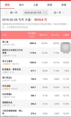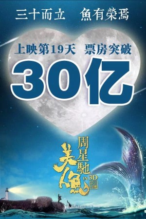 《美人鱼》票房破30啦!2016年2月26日无疑是中国影史上值得记录的一天,就在今天,电影《美人鱼》票房突破30亿元关口,横扫中外成为内地第一部跻身30亿大关的影片。事实上,这部周星驰导演的电影仅用12天就超越《捉妖记》登顶国内影史票房首位。也是2月26日,《功夫熊猫3》距离《西游记之大圣归来》的内地动画电影历史冠军宝座只有5000多万的距离,刷纪录看来也就是一两天的问题。照这样的速度,不少业内人士认为,今年内地电影票房的年总数有望达到600亿元。
