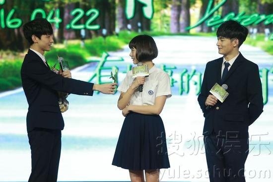 搜狐娱乐讯(马嫚丽/文 玄反影/图 张科明/视频)28日,电影《谁的青春不迷茫》在北京举行发布会,郭姝彤、王鹤润两位女主角首次公开亮相,男主角白敬亭、丁冠森和赵文龙也出席助阵。对于为角色剃光头发一事,王鹤润当天虽然泪语涟涟,但仍摘下发套展示光头造型。