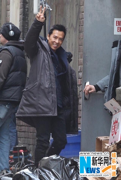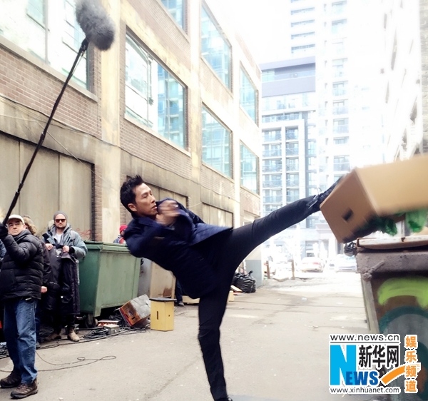 在多伦多街头,甄子丹面对镜头,大方比出“V”型手势,看上去心情不错。多伦多前几天在下大雪,目前天气依然寒冷,在曝光的照片中,工作人员都穿着厚羽绒服。甄子丹衣着轻薄,在多伦多的小巷,施展高抬腿侧踢,姿势帅气,态度专业。