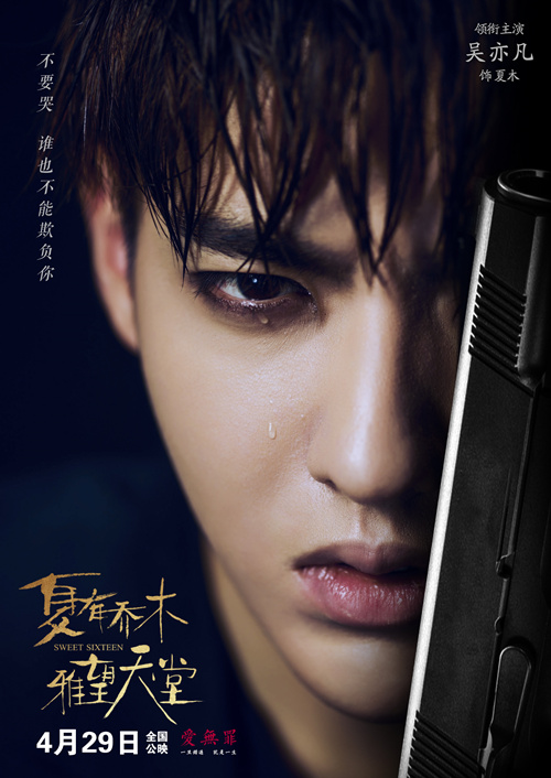 新浪娱乐讯 由韩国导演赵真奎执导,籽月编剧,吴亦凡、韩庚、卢杉、周元、包贝尔、张瑶主演的青春暖伤电影《夏有乔木 雅望天堂》昨晚曝光了一组“夏木心语”版海报。这套纯黑背景海报中,吴亦凡饰演的夏木眼神深邃眉头紧锁,眼泪夺眶而出的同时像是沉默地诉说着内心的隐忍和不甘。而贴在唇边的手枪透着冰冷的光泽折射出纠结难解的爱与恨,似是酝酿着一场“杀机”的上演。